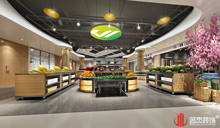 各个市肆的货架上摆满商品却又不显得杂乱无章,装修装饰的细节给人新鲜感,用蔬菜水果做装扮充满人世烟火气,现代简约的气概中展现着着装饰的小心机。